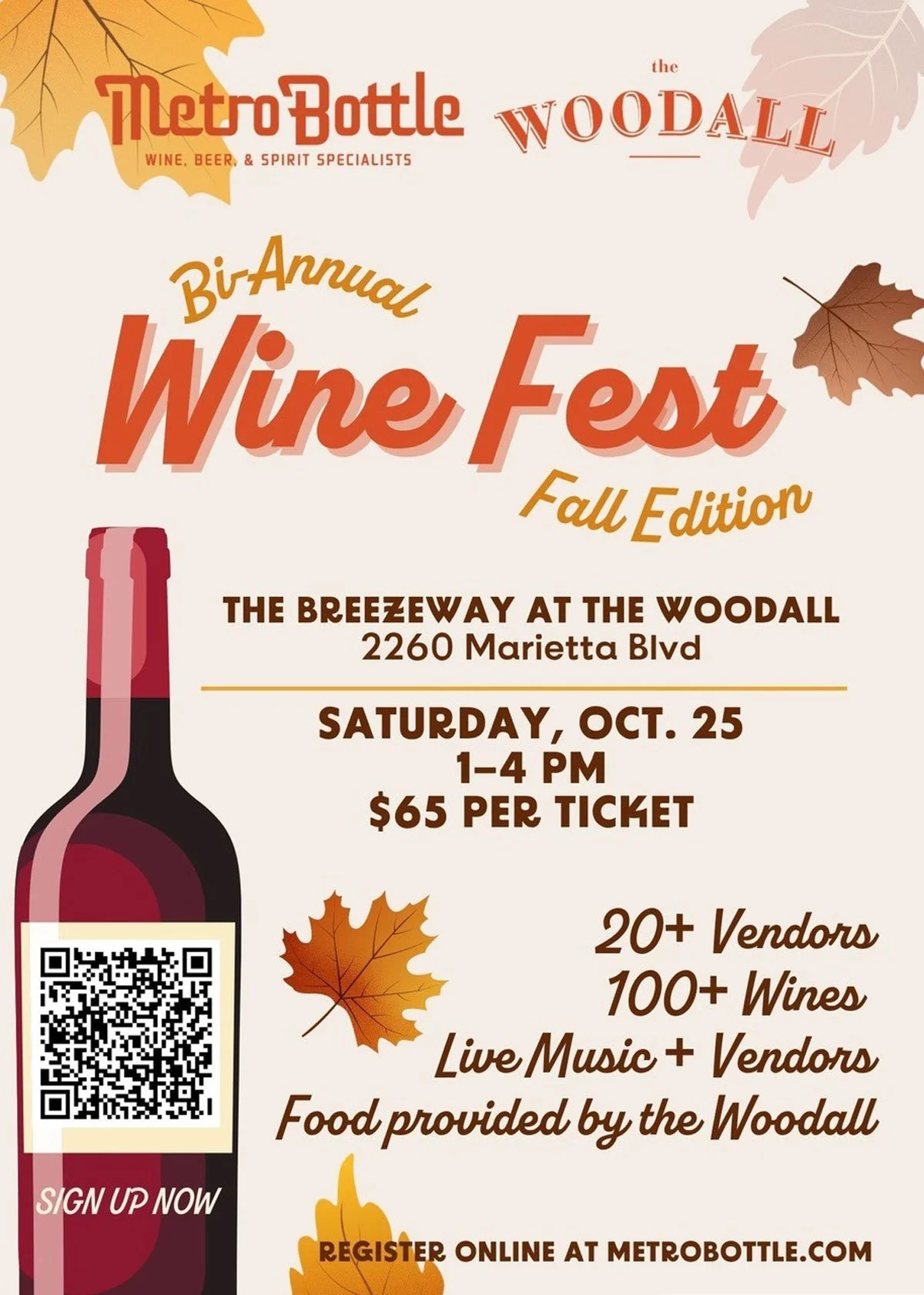 The Woodall is transforming its breezeway into a wine lover’s haven on Oct. 25, 2025, as it hosts MetroBottle’s Bi-Annual Wine Fest: Fall Edition. From 1-4 p.m., guests can sip more than 100 wines from 20-plus global vendors while enjoying curated bites and a grazing table prepared by the Woodall. The afternoon also features live music, artisan vendors and a raffle, making it a festive showcase of flavors and community. Tickets are $65 per person in advance or $75 per person day-of, if available. This 21+ event runs rain or shine.